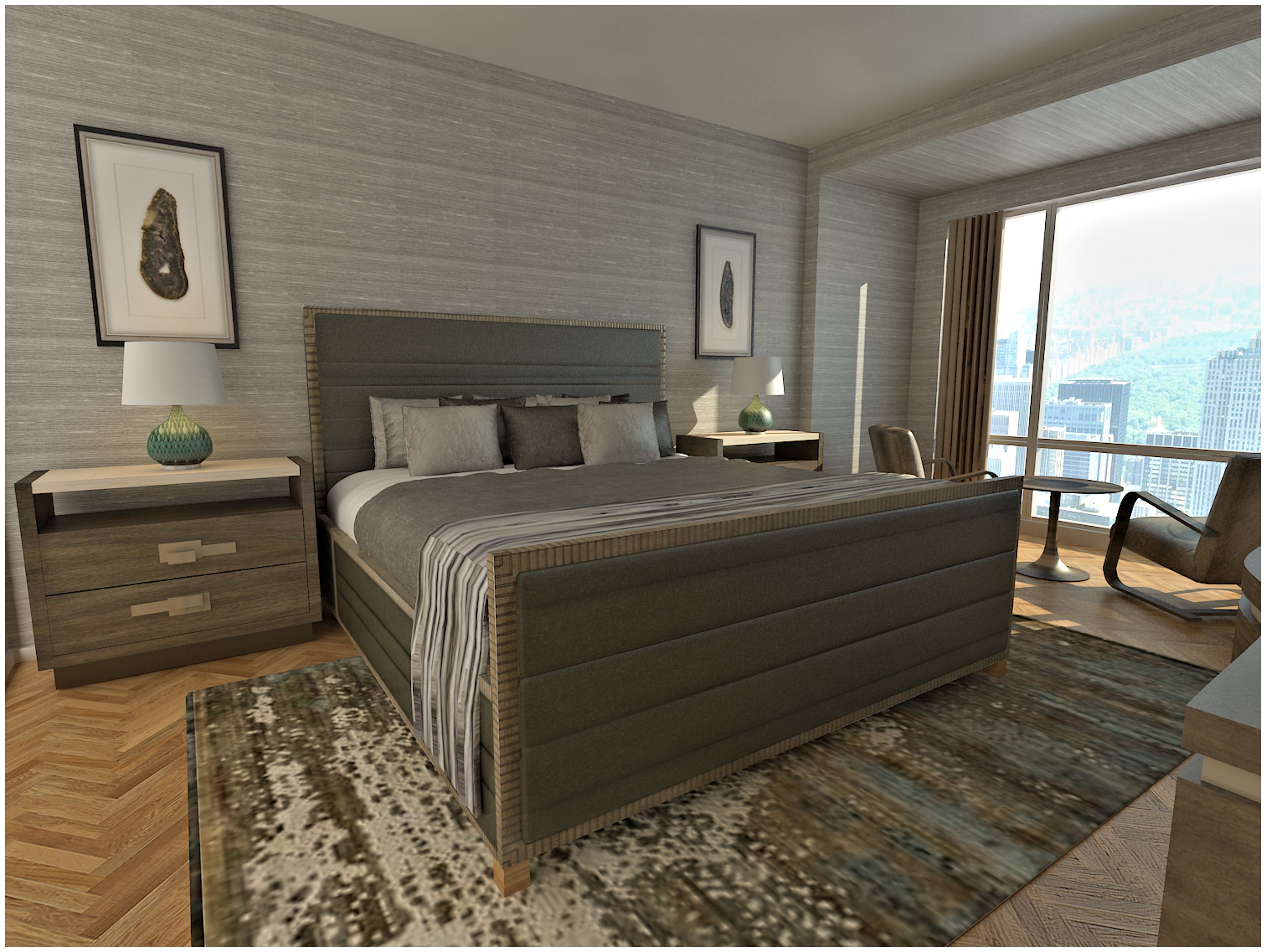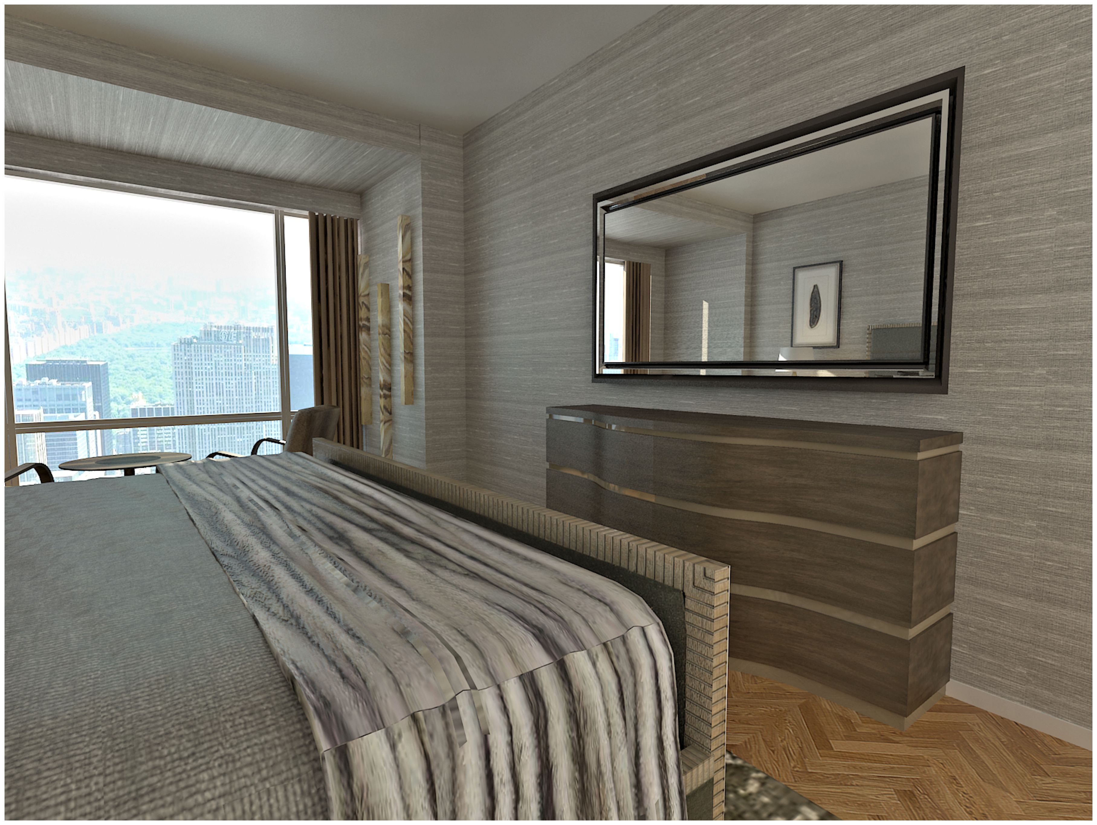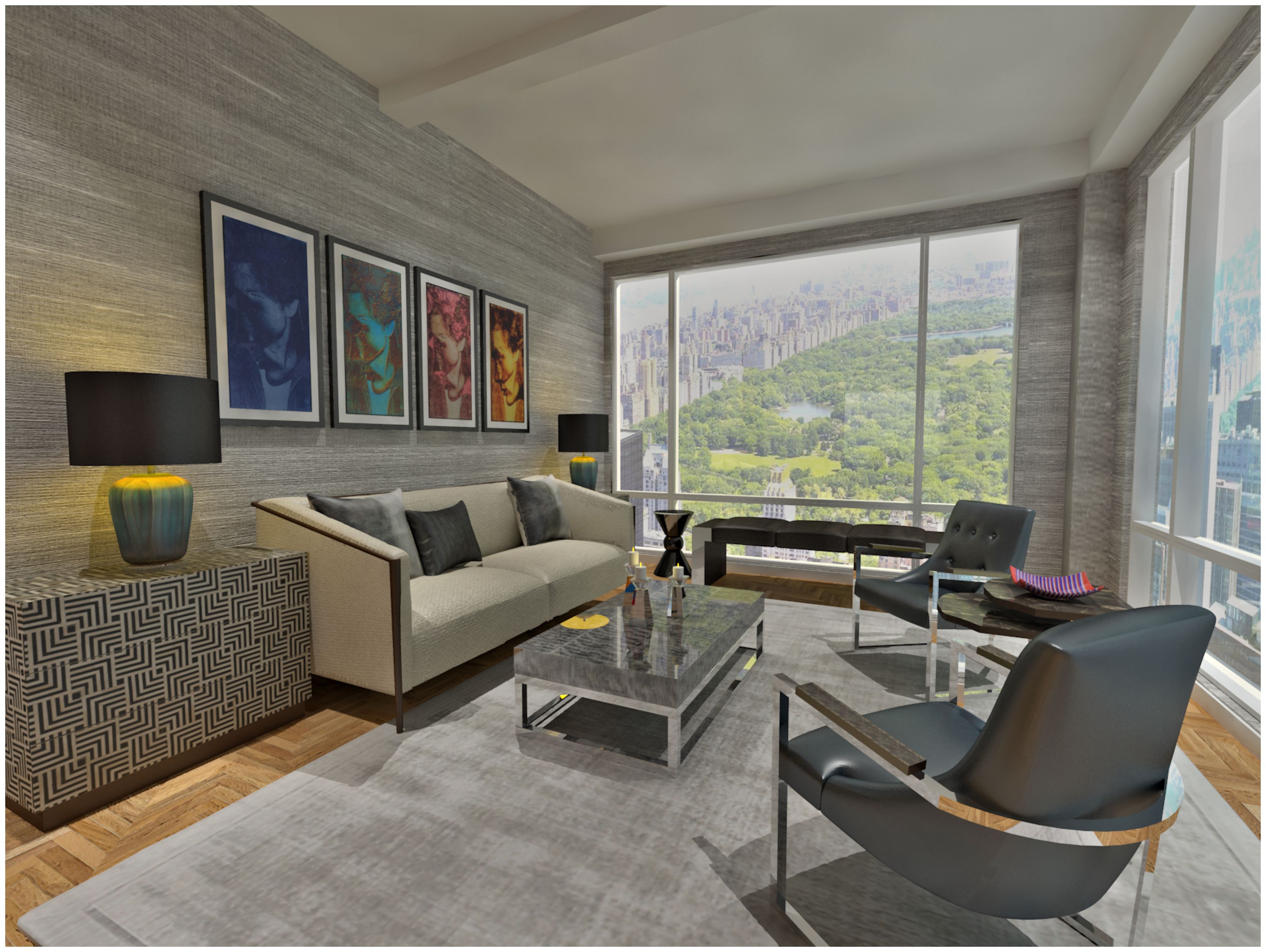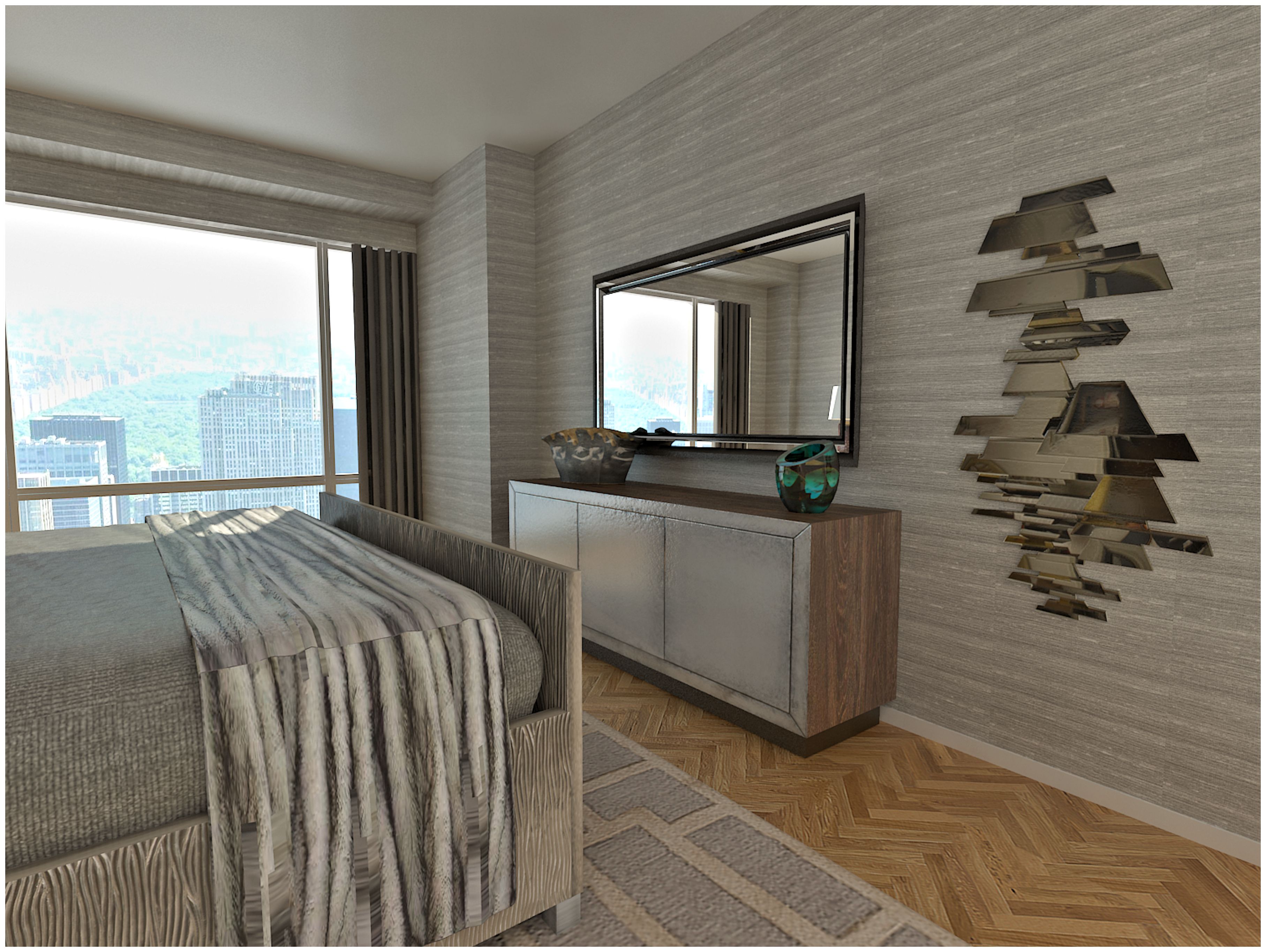 CIH Design recently begin conceptualizing the interior design for a 2-bedroom condo in this grand tower. Our client wanted a comfortable space with clean lines and a masculine feel. Designer Shelly David used a neutral palette with plenty of metallic and reflective accents to create a modern space that maximizes the natural light.