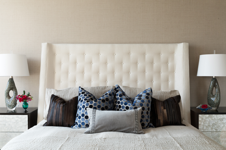 To create a space with a masculine feel, CIH designer Shelly David started with a neutral base with dark accents and added subtle pops of color. Because the client loved the yellow accents in his Honolulu condo, we carried this palette throughout the Boston space. Sunny yellow pillows in the living room and bedroom brighten the main living areas.